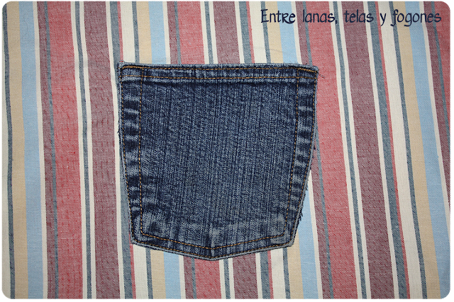He aprovechado uno de los bolsillos del vaquero para ponerlo en el interior del bolso. Se cose antes de poner el forro en el bolso.